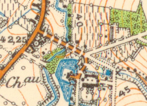 De pannen- en buizenfabriek op de kaart van 1939 bovenaan, onderaan het kasteel van Wijer.